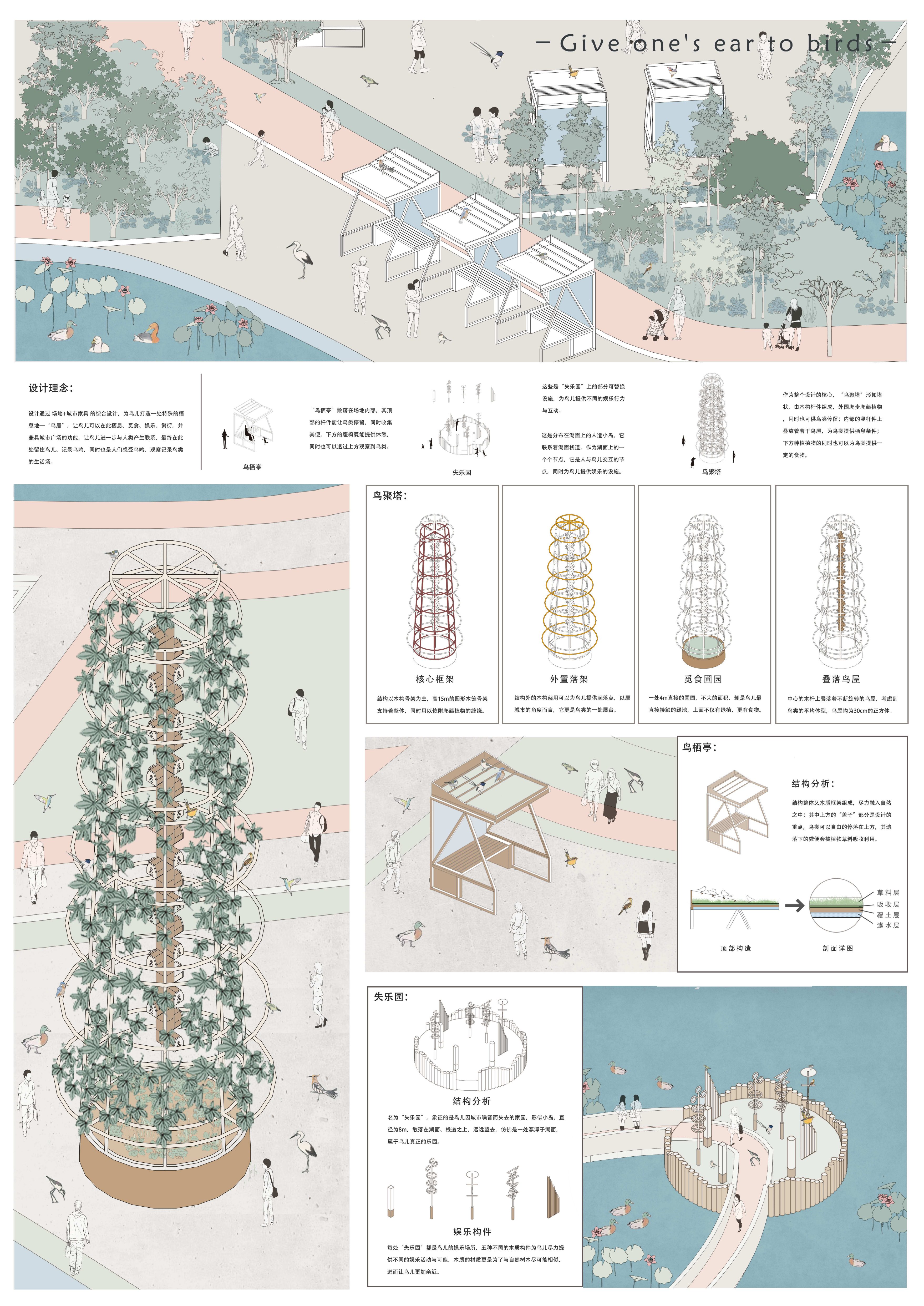 侧耳倾听Give one's ear to birds—基于公共景观小品的构造